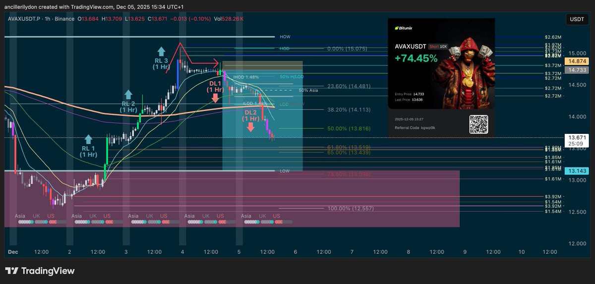 $AVAX short playing out. Half Batman, stop hunt, and drop. Will we get to the LOW? If we do, that's an 11:1 R:R
