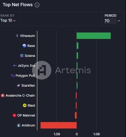 Ha habido algunos movimientos interesantes en el mercado. Ethereum está viendo un retorno de capital después de que Solana había estado atrayendo mucha atención. En los últimos días, Solana ha transferido cuatro veces más capital a Ethereum que Ethereum a Solana, lo que sugiere un cambio de vuelta a Ethereum.