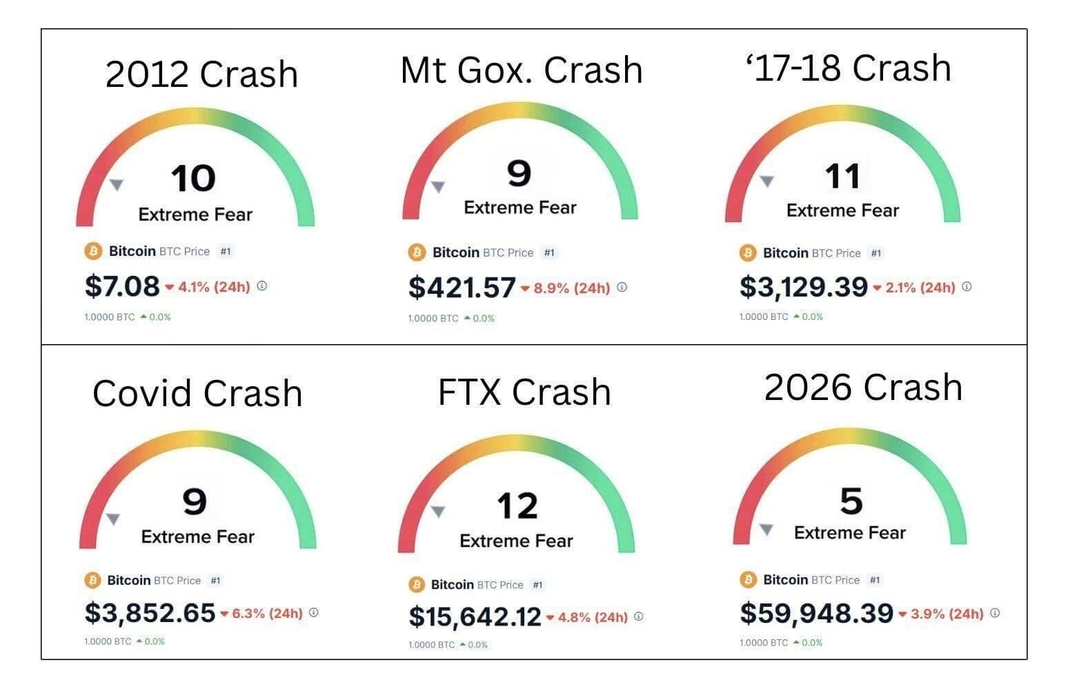 Analyst Quinten François highlighted that in Bitcoin’s history, periods of extreme fear have often marked major turning points rather than the end of the cycle. He compared the current situation to past events like the 2012 crash, the Mt. Gox collapse, the 2018 bear market, the COVID crash in 2020, and the FTX collapse in 2022. In each of those phases, Bitcoin traded at prices that seemed extremely low at the time, yet long-term holders who stayed patient were eventually rewarded.